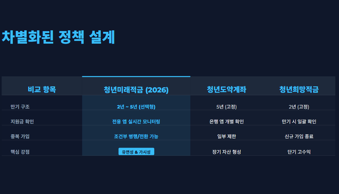 2026 청년미래적금은 청년 자산 형성을 위한 정책형 금융상품으로, 가입조건·소득 기준·정부지원금 구조를 정확히 이해해야 실질적인 혜택을 받을 수 있습니다. 특히 2026년에는 기존 청년도약계좌와의 관계, 중복 가입 가능 여부, 소득 구간별 지원금 차이에 대한 문의가 급증하고 있습니다. 이 글에서는 2026년 기준으로 달라진 핵심 사항과 실제 가입 전 반드시 확인해야 할 부분을 정리합니다.