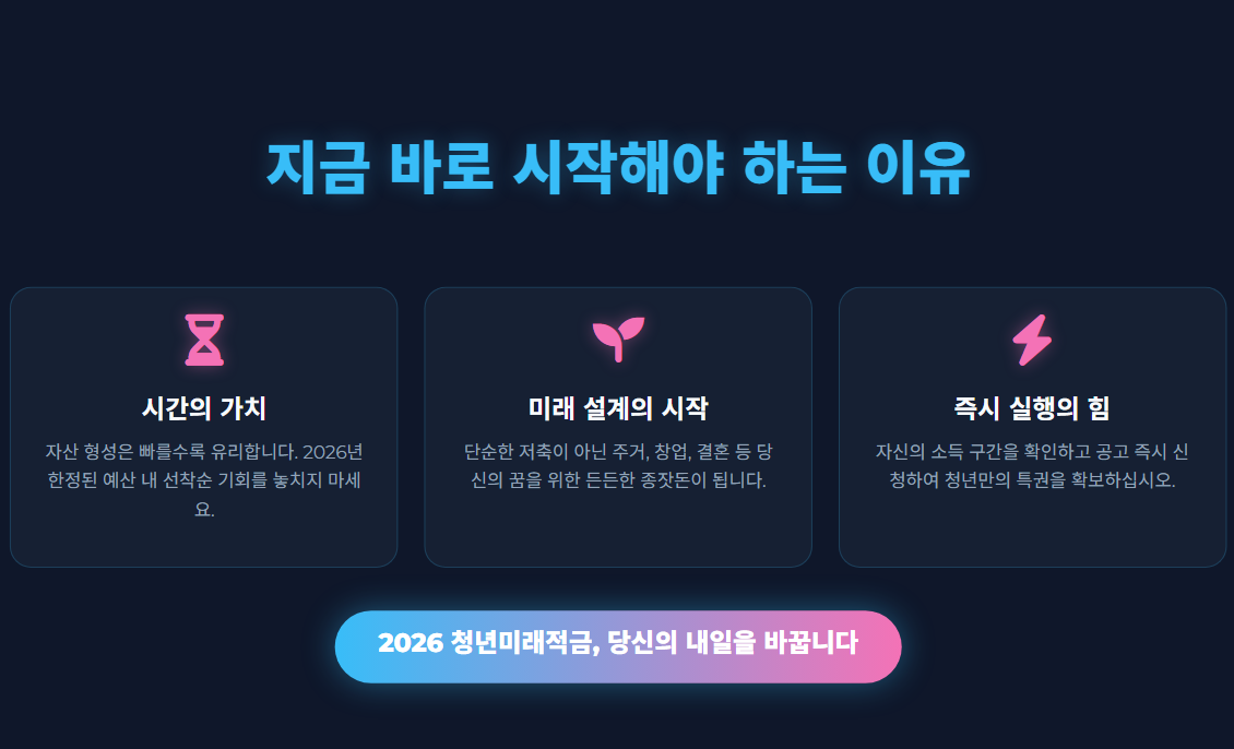 2026 청년미래적금은 이런 구조적 한계를 보완하기 위해 설계된 정책형 상품입니다.